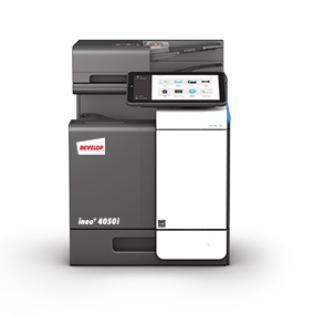 The Develop Ineo+ 4050i features 40 ppm speeds, a redesigned interface, a tiltable screen, a quad core processor, standard marketplace networking, long life consumables, speech recognition technology, and Section 508 compliance.
