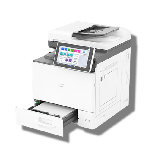This color MFP is the first Ricoh A4 device to feature Ricoh ‘Always current technology’ ensuring it will always utilise the most up-to-date technology. Designed to improve your workflow it powers through prints, copies, scans and faxes more materials, faster and remotely from wherever you are . You’ll be glad to know our A4 and A3 MFP models work in exactly the same way too.